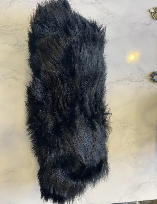 LK Bennett Black Leather and Faux Fur Clutch Handbag