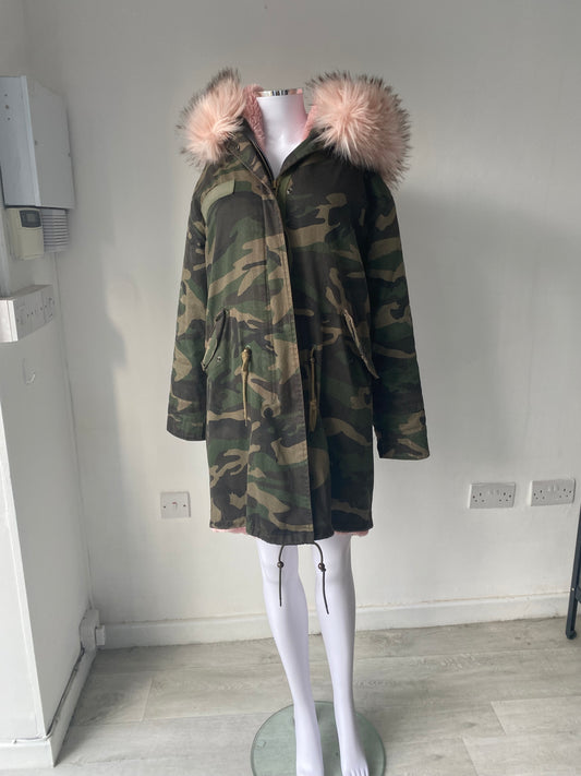 Jane and Tash Camouflage Print Fur Lined Coat with Hood Size S-M