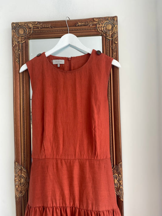 Hobbs Burnt Orange Linen Tiered Maxi Dress Size 16