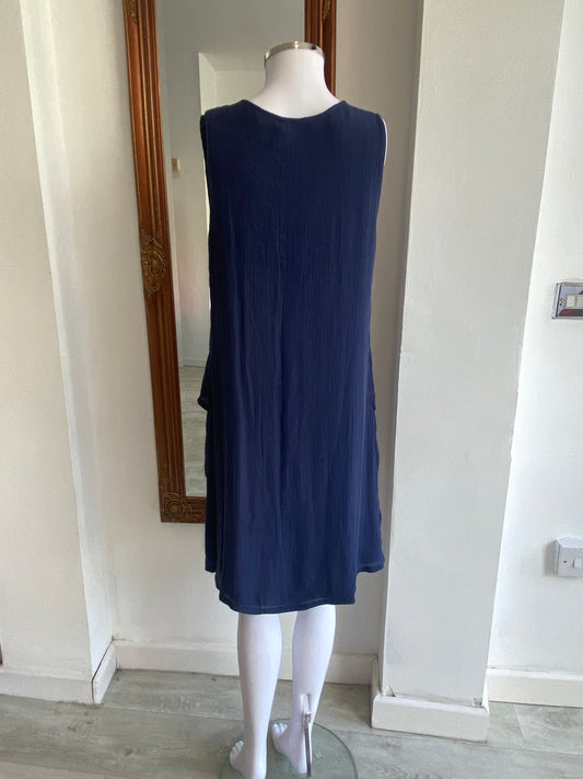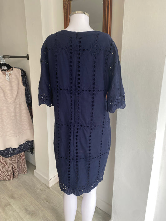Pomodoro Cotton Dark Blue Broderie Anglaise Dress Size 14