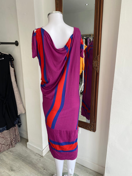 Vivienne Westwood Anglomania Pink Striped Asymmetric Dress Size Small 8-10