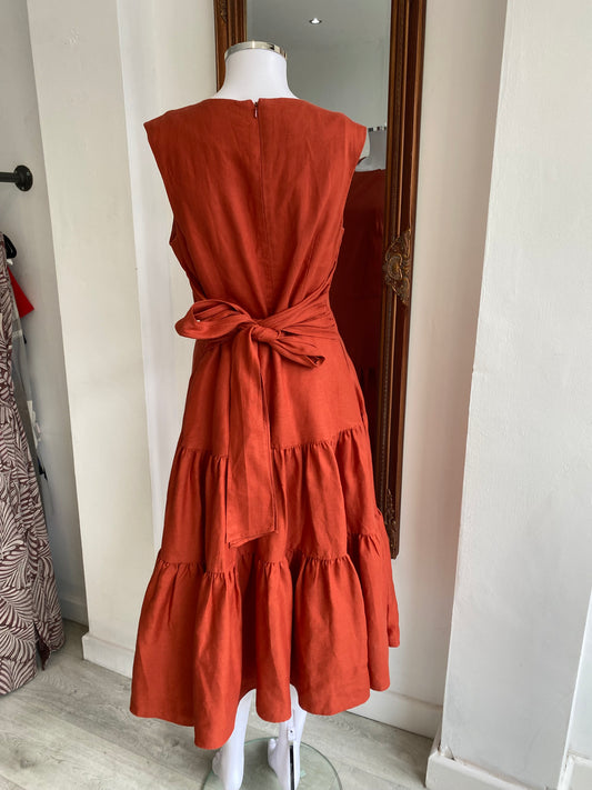 Hobbs Burnt Orange Linen Tiered Dress Size 12