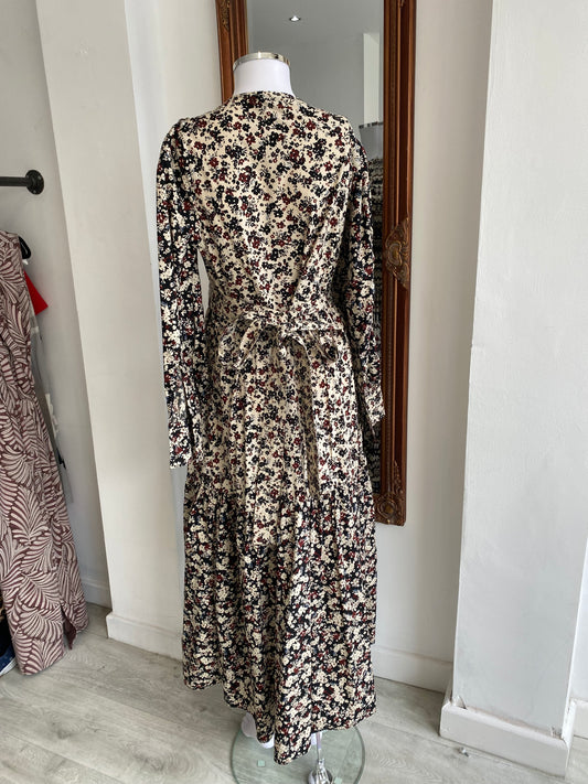 Second Female Beige and Brown Floral Print Maxi Dress Size 12-14
