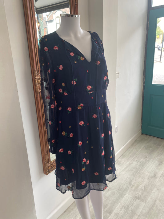 Cath Kidston Rose Embroidered Navy Dress Size 12