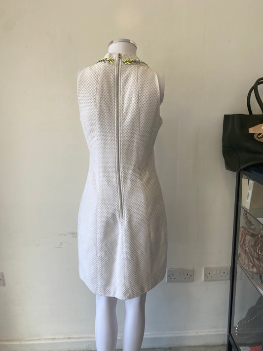 Ted Baker White Textured Dress with Beaded Neckline Size 10