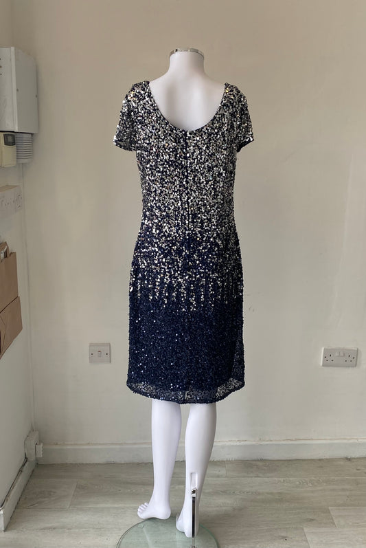 Maya Deluxe Silver Sequinned Full Length Gown Prom Dress Size 12