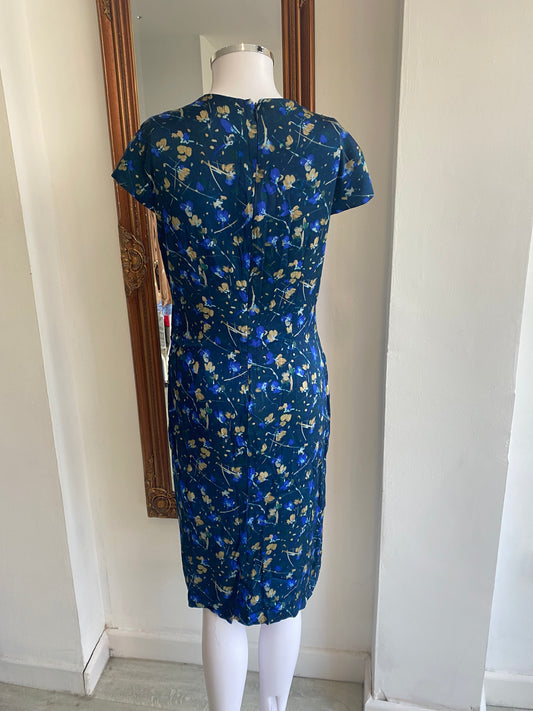 Hugo Boss Blue Patterned Silk Dress Size 10