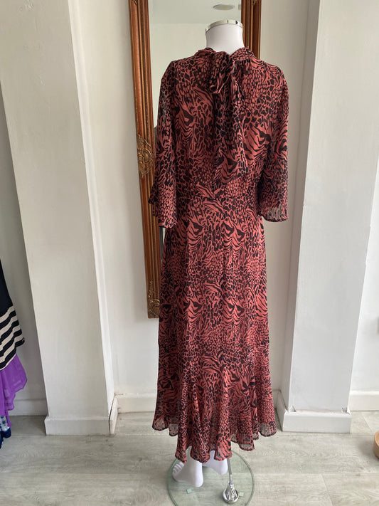 Phase Eight Brown and Cream Appliqué Dress Size 10