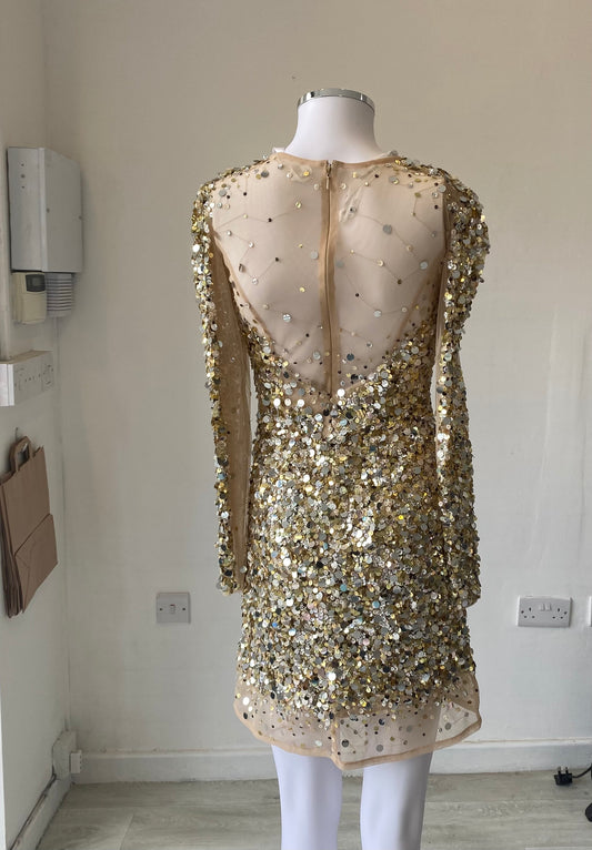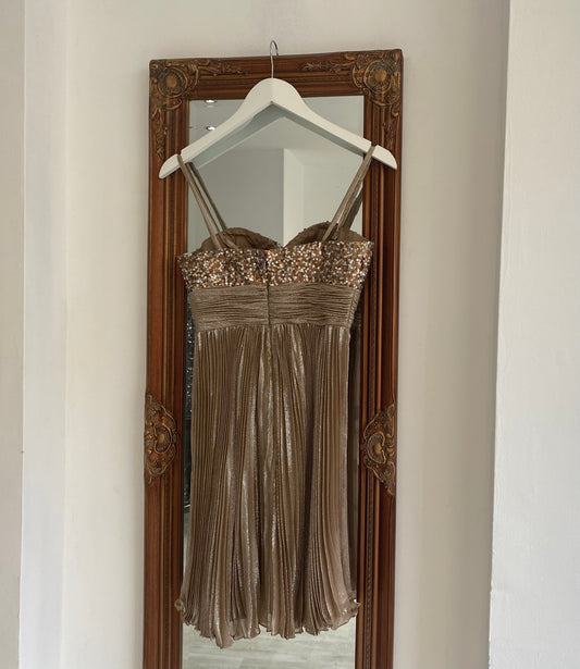 Sherri Hill Gold Sequin and Pleated Dress Size 6
