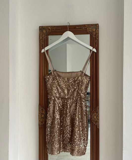 Alice and Olivia Bronze Sequin Strapless Dress Size 8