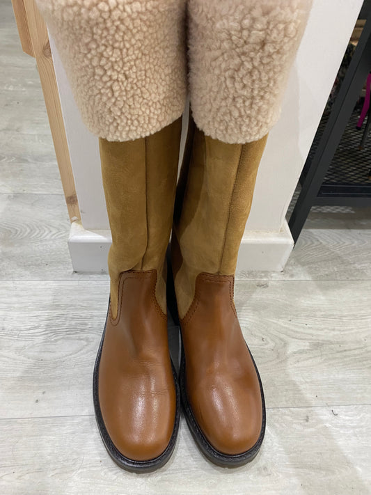 Chloe Tan Leather and Suede Boots Size 7