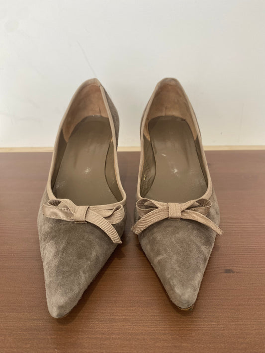 LK Bennett Beige Suede Heels with Bow Detail Size 5