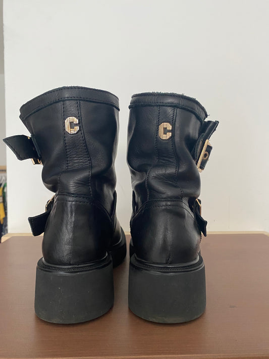 Carvela Black Leather Biker Boots Size 5