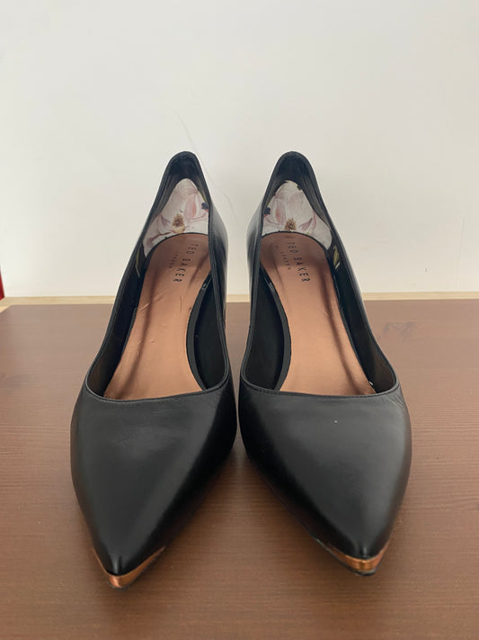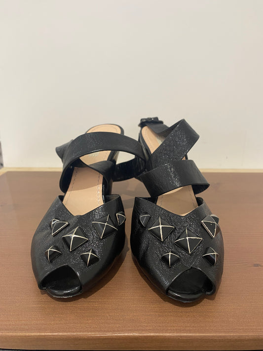 Moda In Pelle Black Patent Peep Toe Shoes Size 4