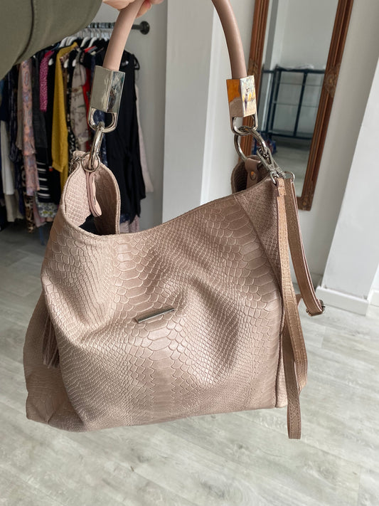 Carla Ferreri Blush Pink Textured Leather Tote Handbag with Dust Bag
