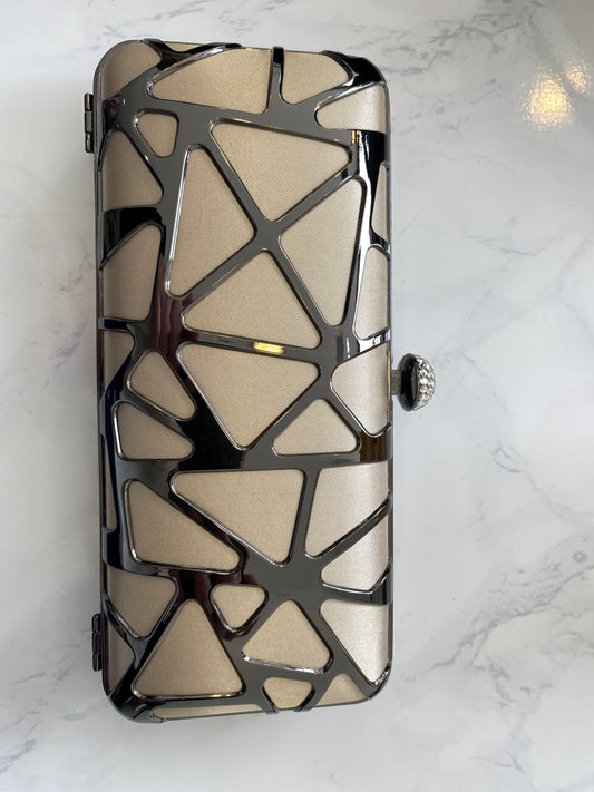 Olga Berg Metal Clutch Bag with Diamante Clasp