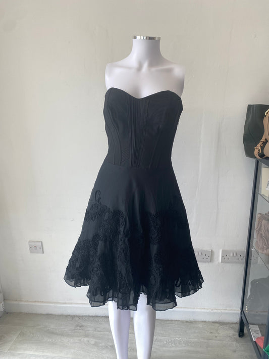 Karen Millen Black Strapless Dress with Full Skirt Size 6-8