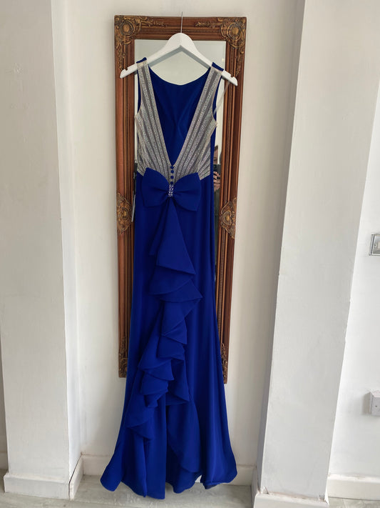 Pia Michi Royal Blue Gown with Bow Detail Prom Dress Size 8