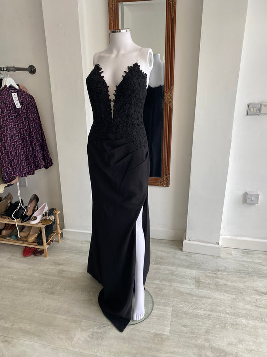 Zara Black Maxi Dress with Lace Panel Size Medium