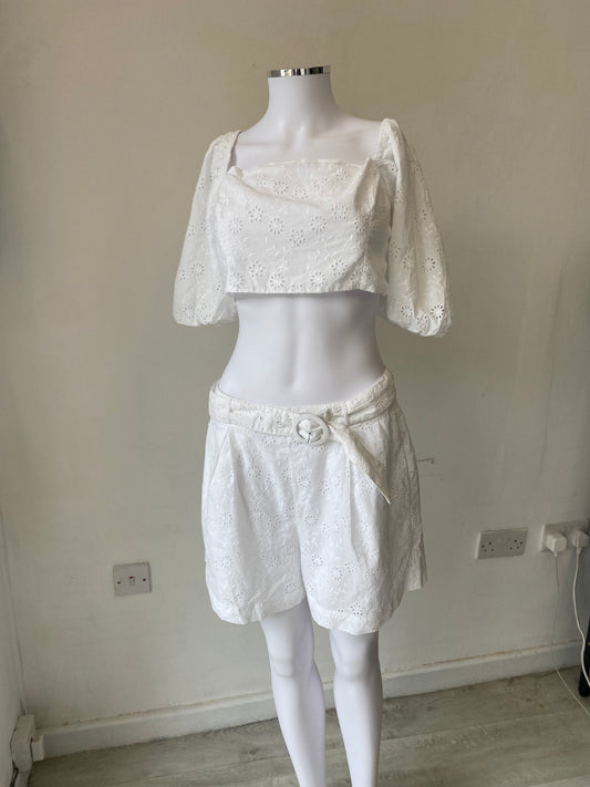 Nobody’s Child White Co-Ord Top and Shorts Set Size 12
