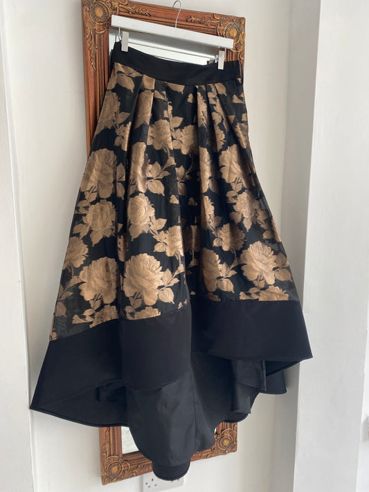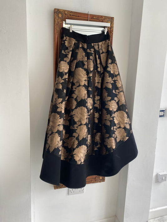 Coast Black Flared Skirt with Gold Floral Print Size 14