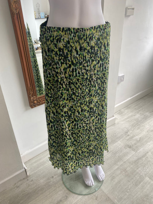 Oliver Bonas Green Patterned Midi Skirt Size 12