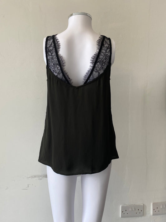Mint Velvet Forest Green Top with Lace Detail Size 10