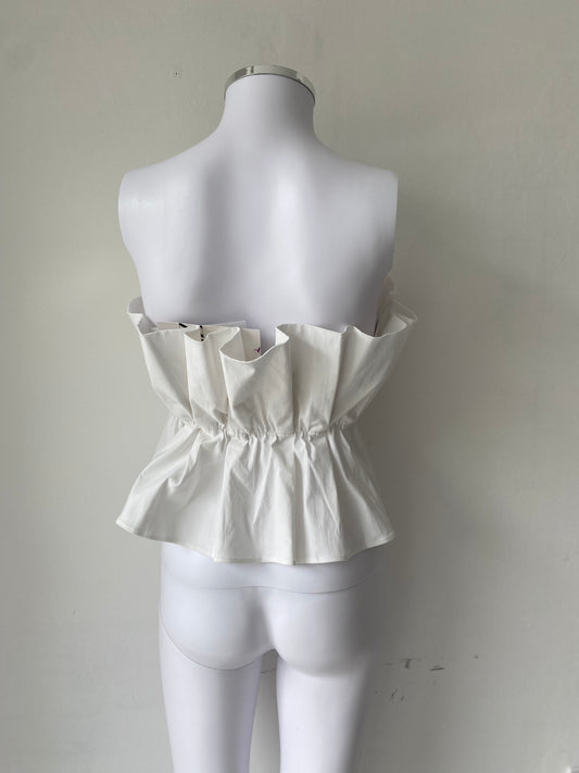 Zara White Ruffle Bandeau Top Size 10-12
