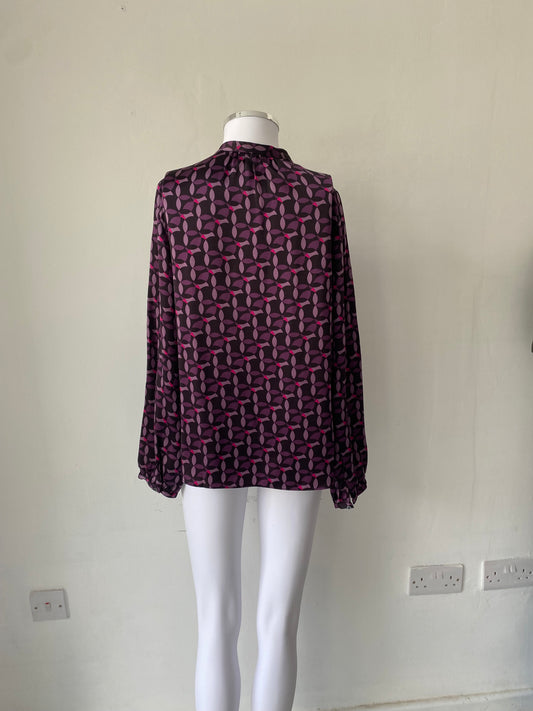Jigsaw 100% Silk Printed Shirt Top Size 8