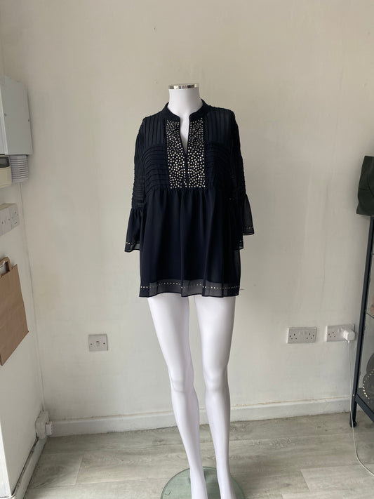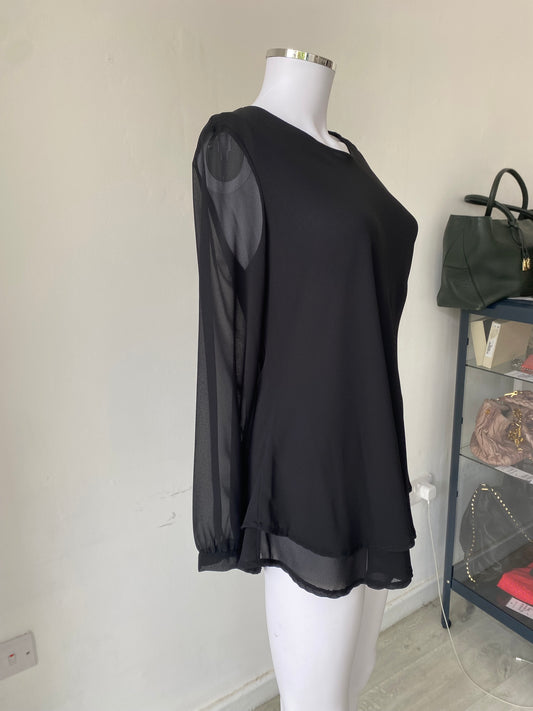 James Lakeland Black Chiffon Long Sleeved Top Size 12