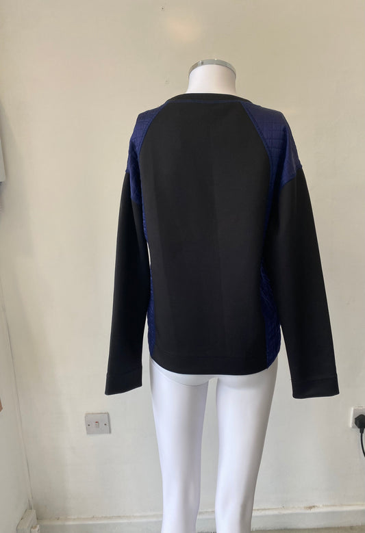 Sandro Black Sweatshirt with Blue Quilted Panels Size 8-10