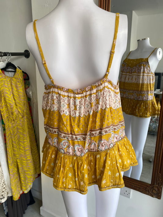 Karen Millen Navy Top with Mustard Pattern Size 10