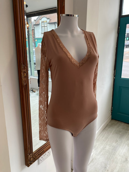 Silvian Heach Beige Lace Bodysuit Size Small 8-10