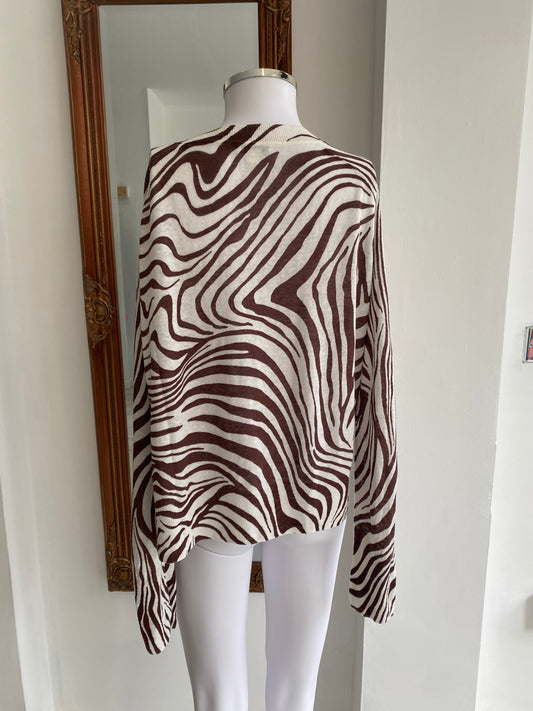 Whistles Linen Knit Animal Print Top Size 8-10