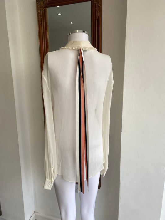 Reiss Cream Chiffon Ruffle Blouse with Ribbons Size 8
