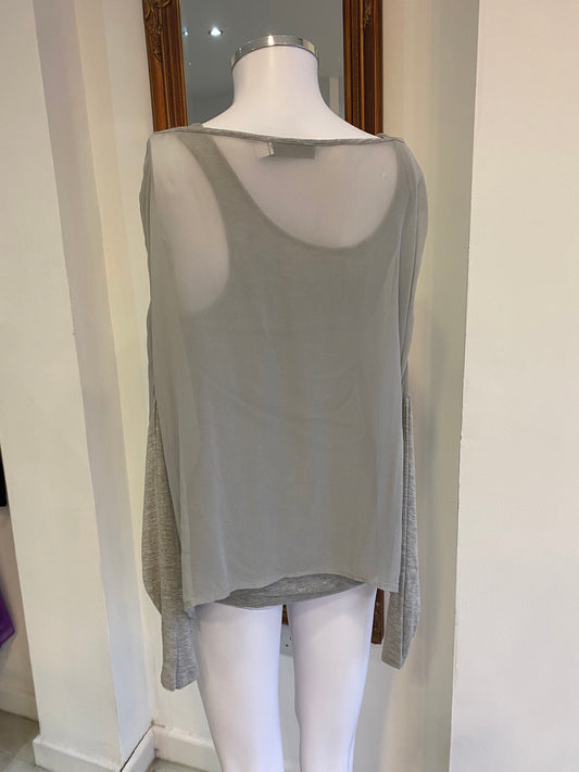 Mint Velvet Grey Top with Sheer Beaded Layer Size 8