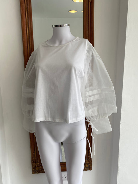 Mango White Top with Sheer Sleeves Size 8-10
