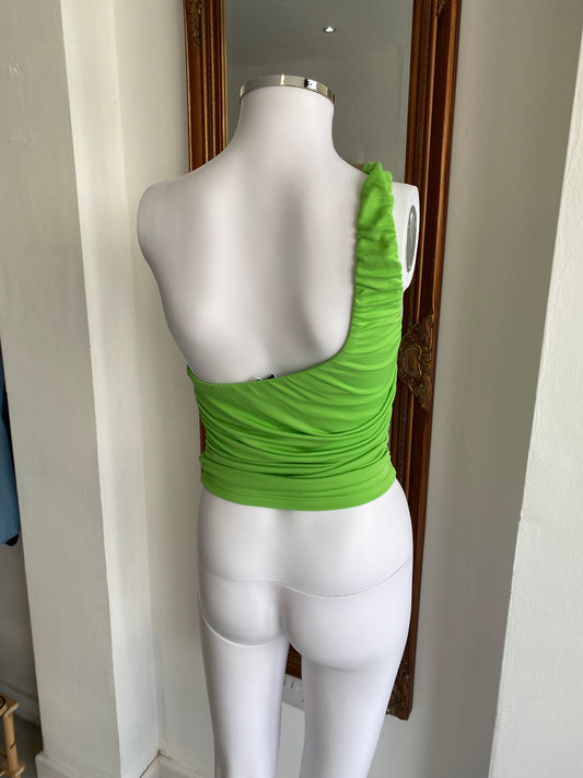 Zara Green Cropped One Shoulder Top Size 6-8