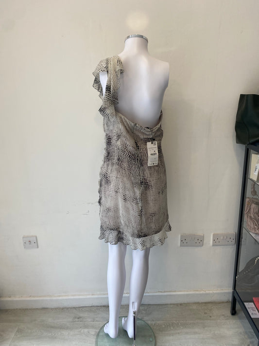 Zara Ruffle Printed Dress One Shoulder With Tags Size L 12