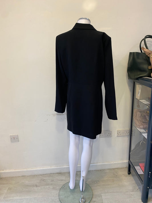 Mango Black Blazer Dress with Pleated Detail Size Large 12