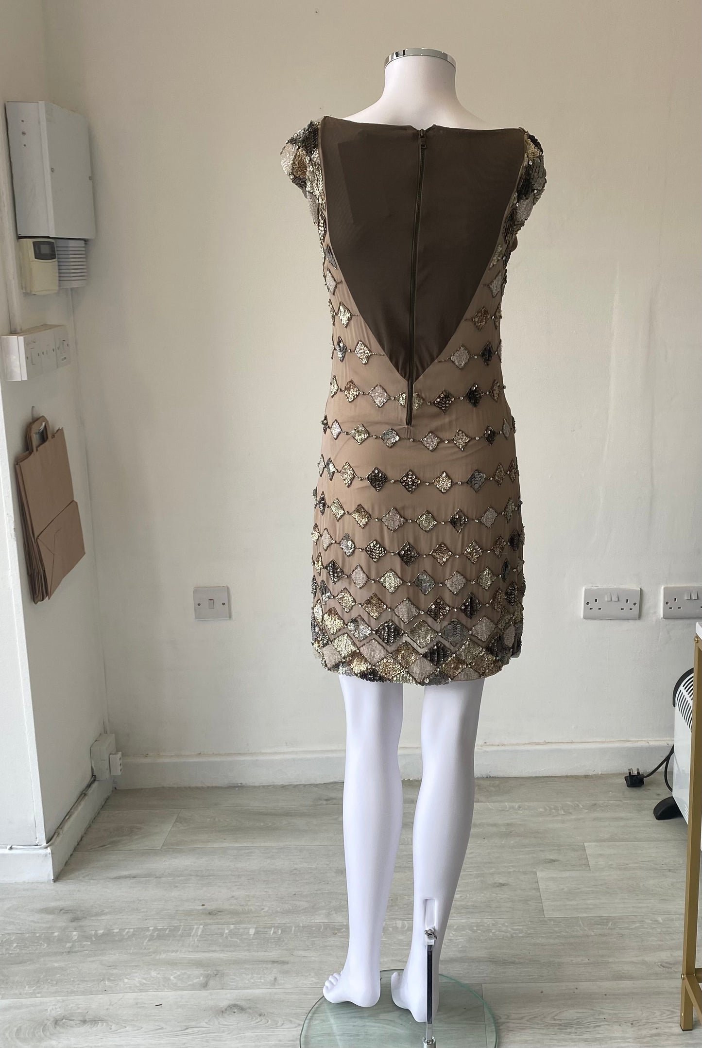 This beautiful dress is stunning, it has sequin and bead detail and is a loose fit dress.