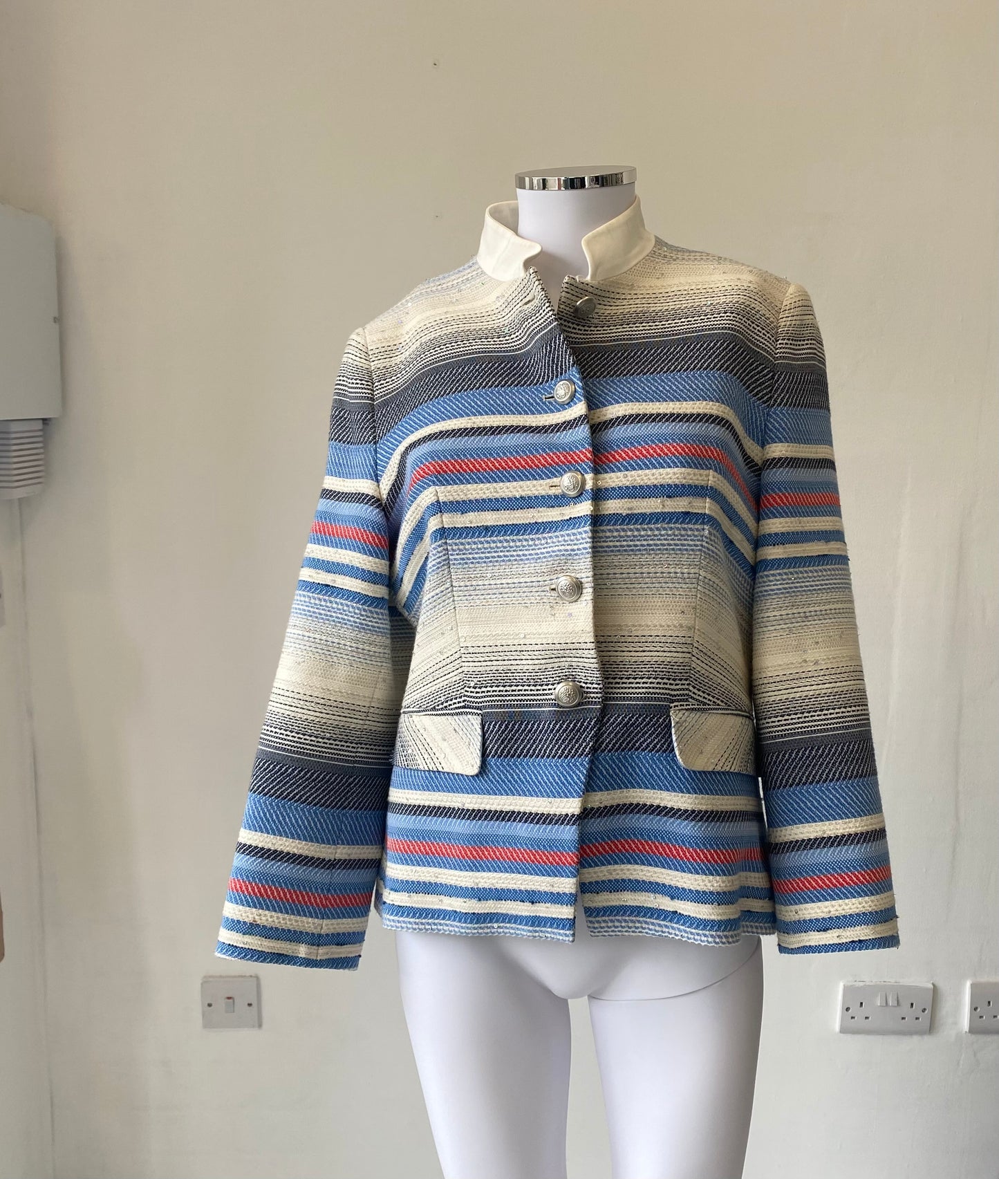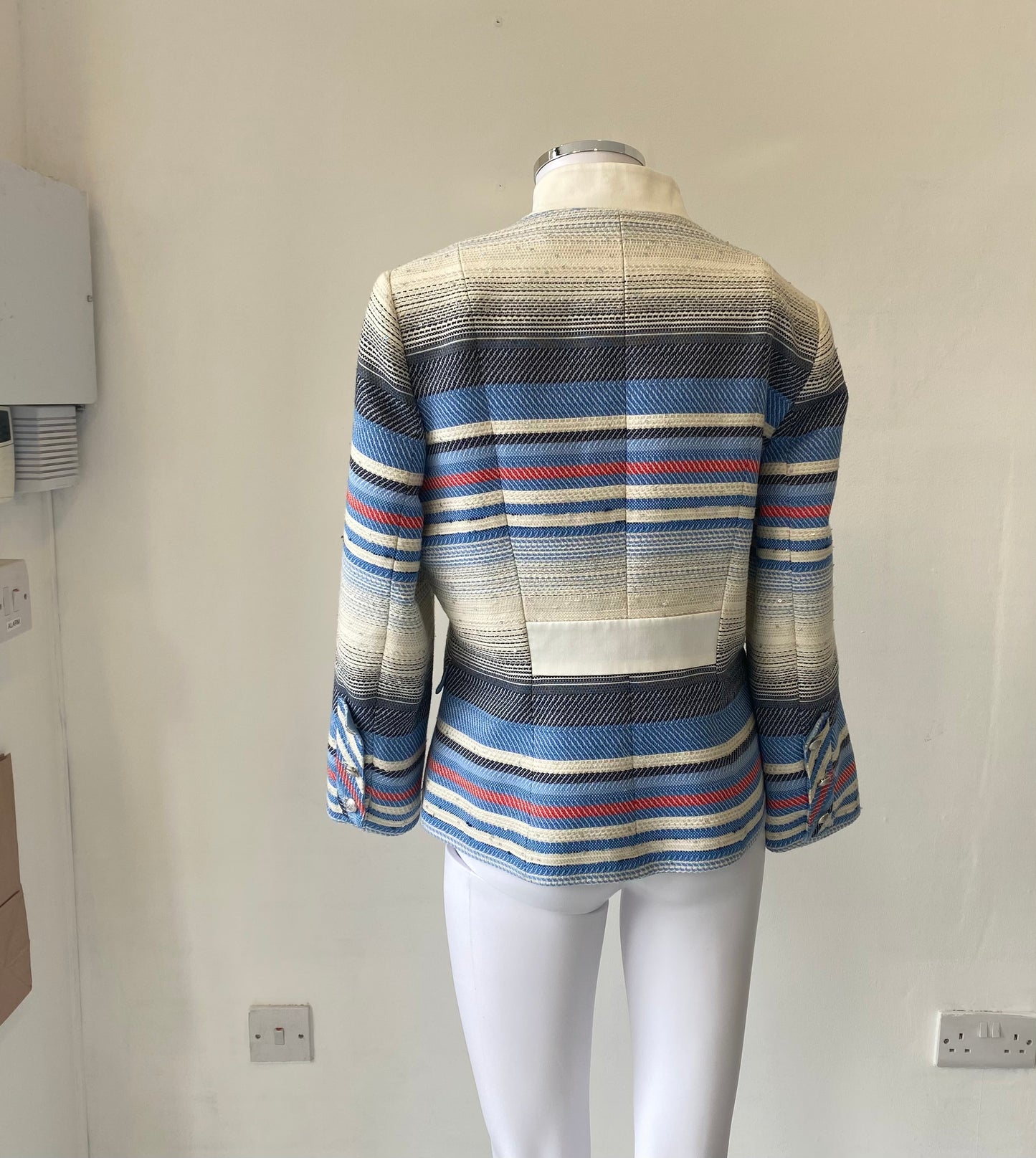 This beautiful jacket is so versatile it could be styled smart or casual. It features subtle transparent sequins making it catch the light.