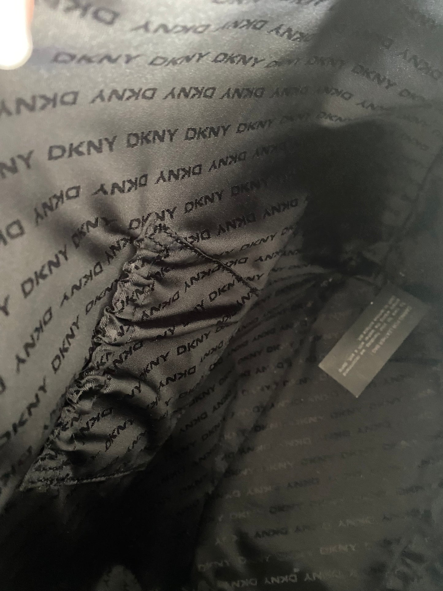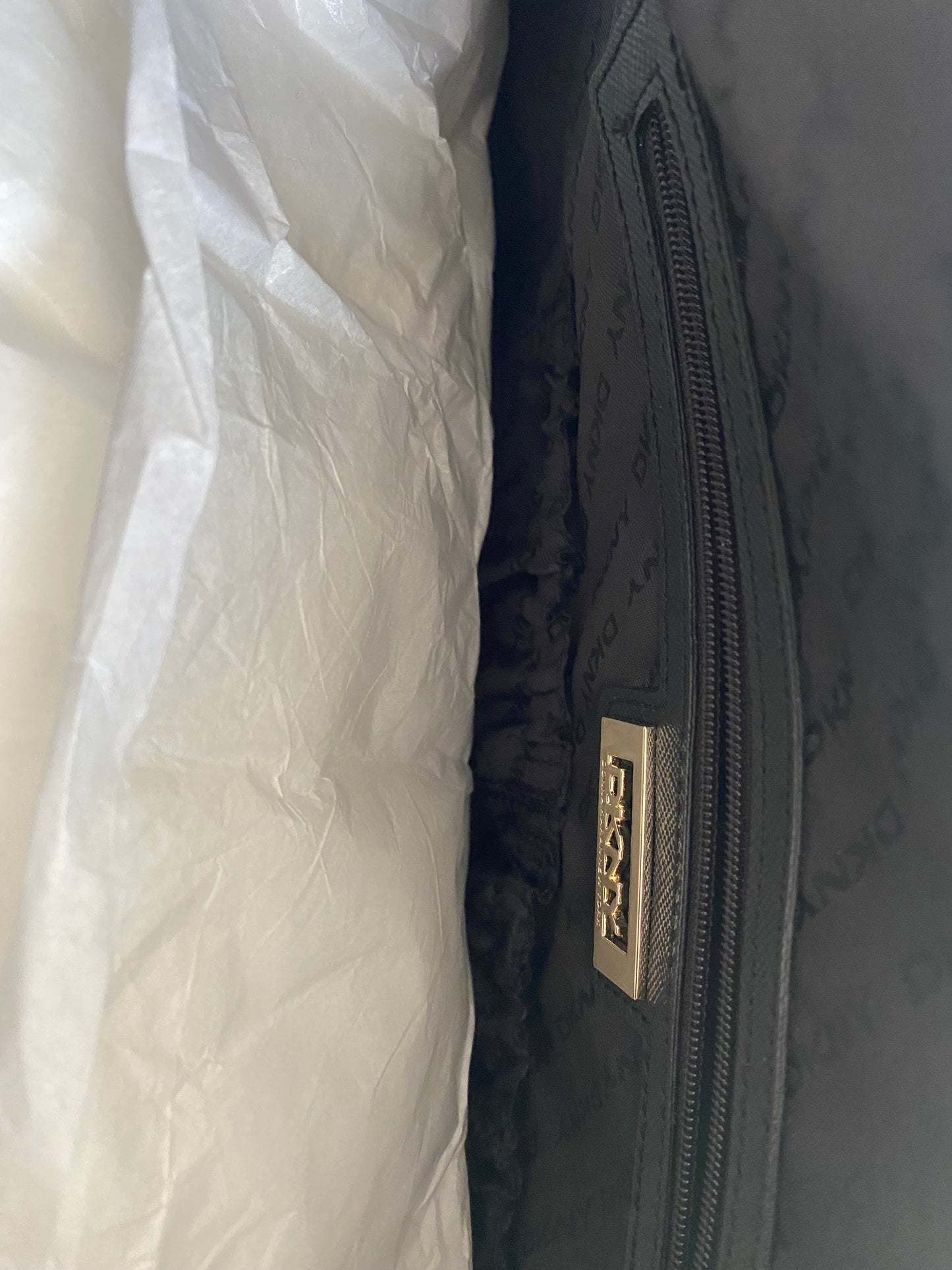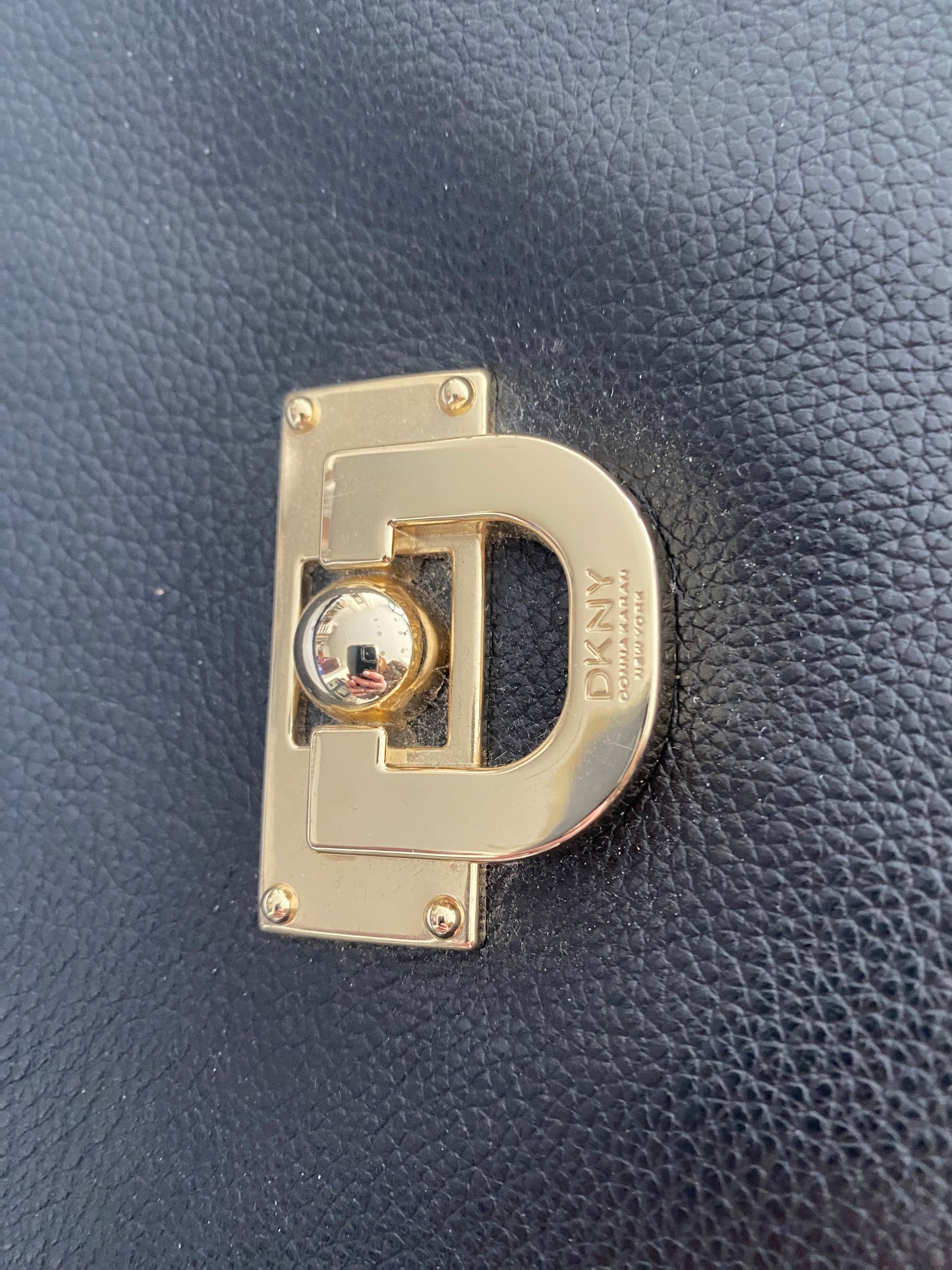 This bag is in excellent condition. Clean inside. Has a lovely DKNY bag charm. Zips to close.