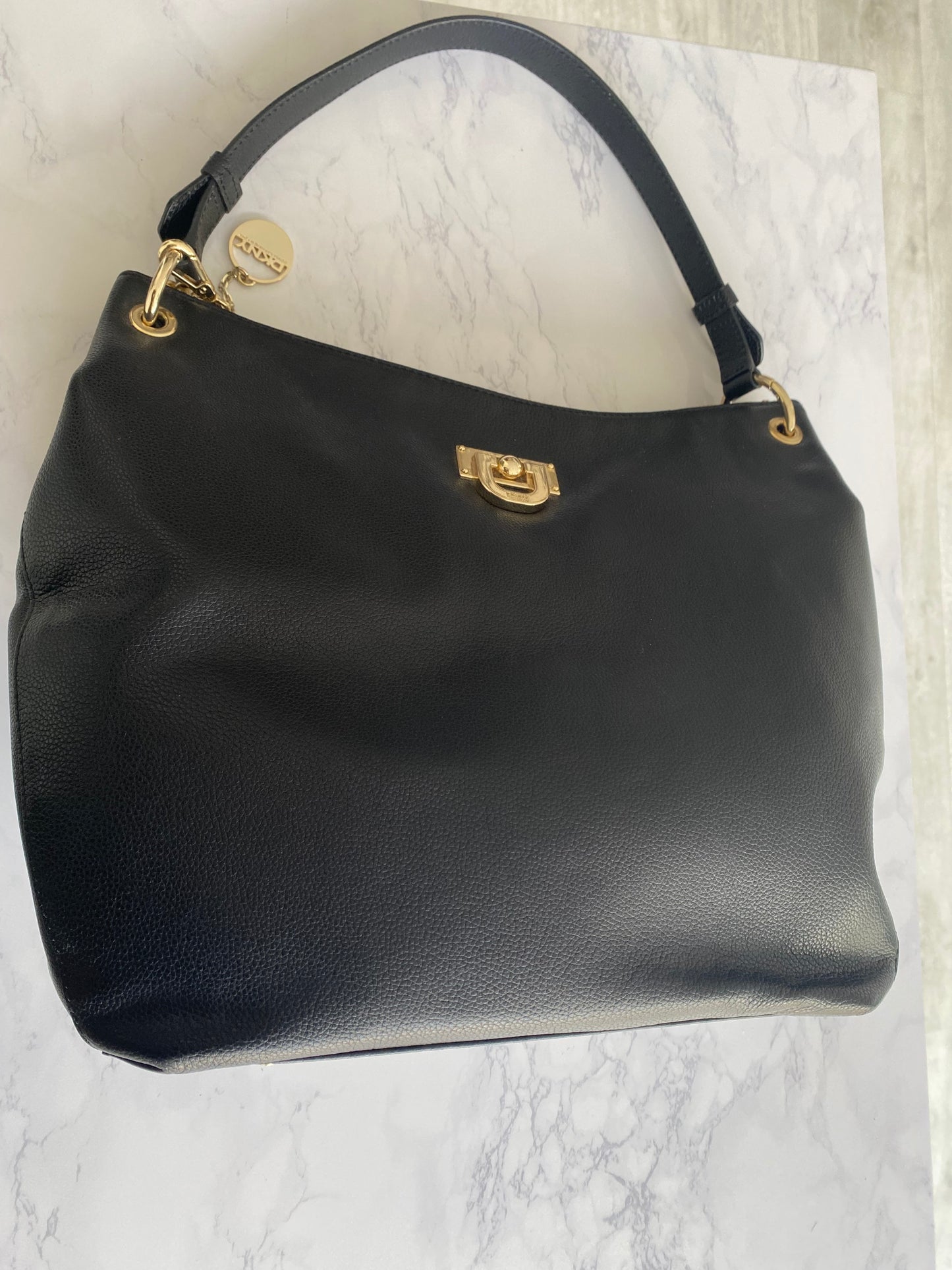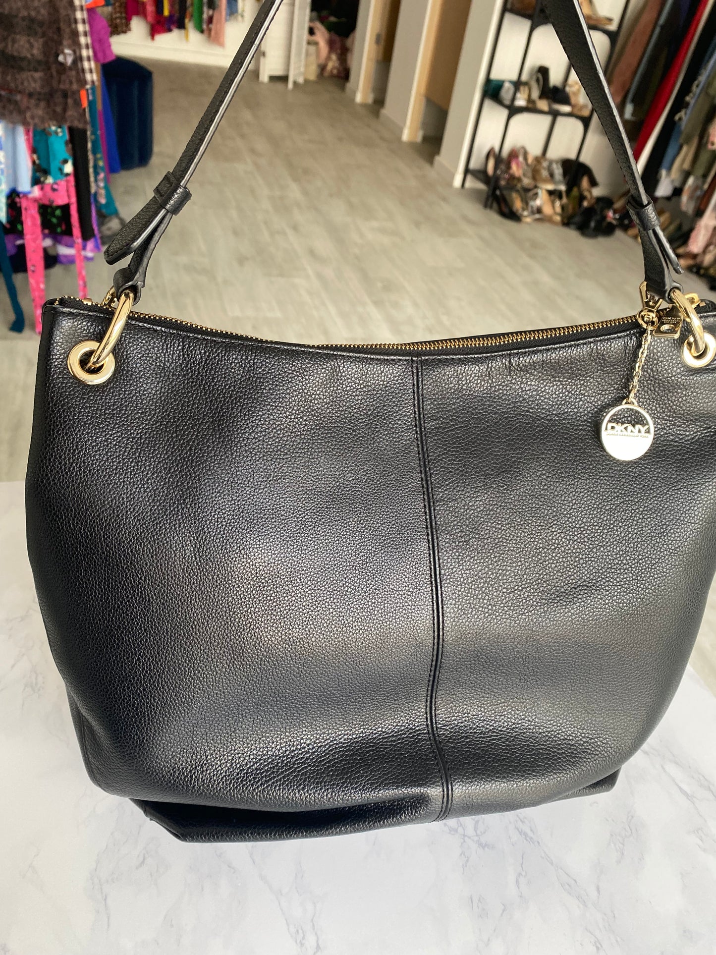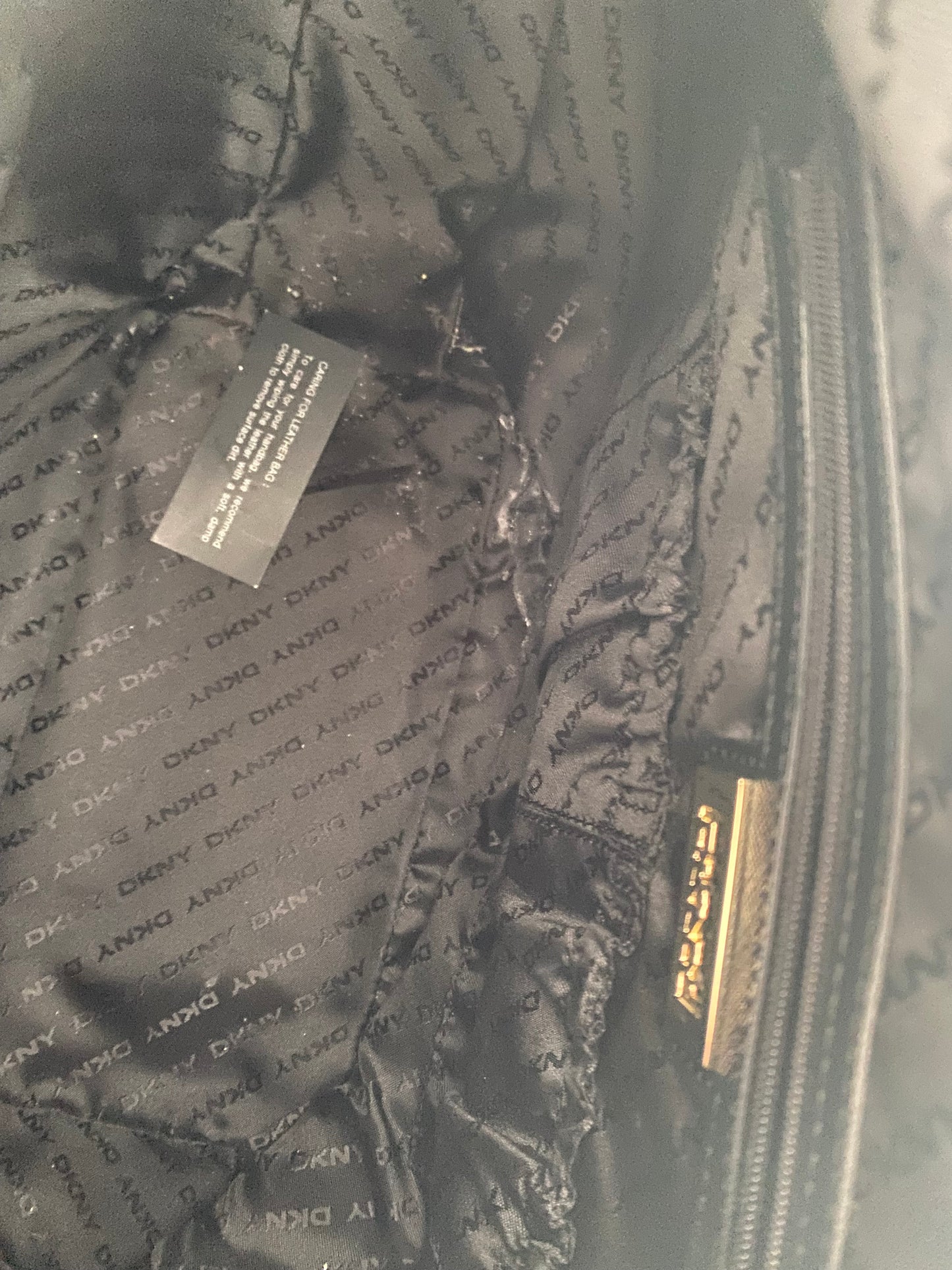 This bag is in excellent condition. Clean inside. Has a lovely DKNY bag charm. Zips to close.