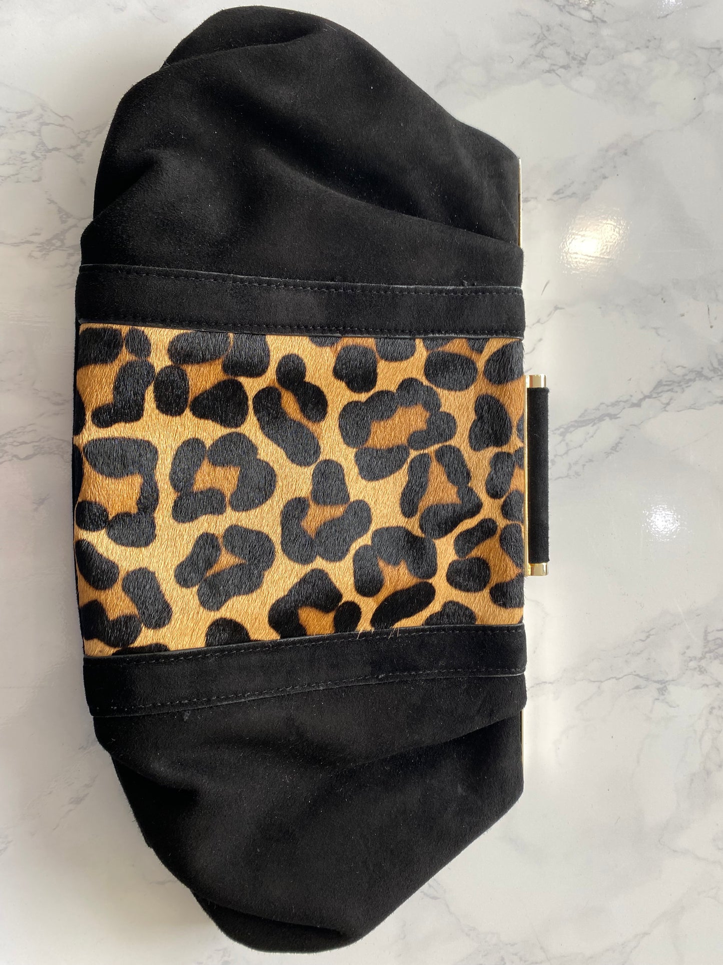 Dune Black Suede and Leopard Print Pony Hair Handbag