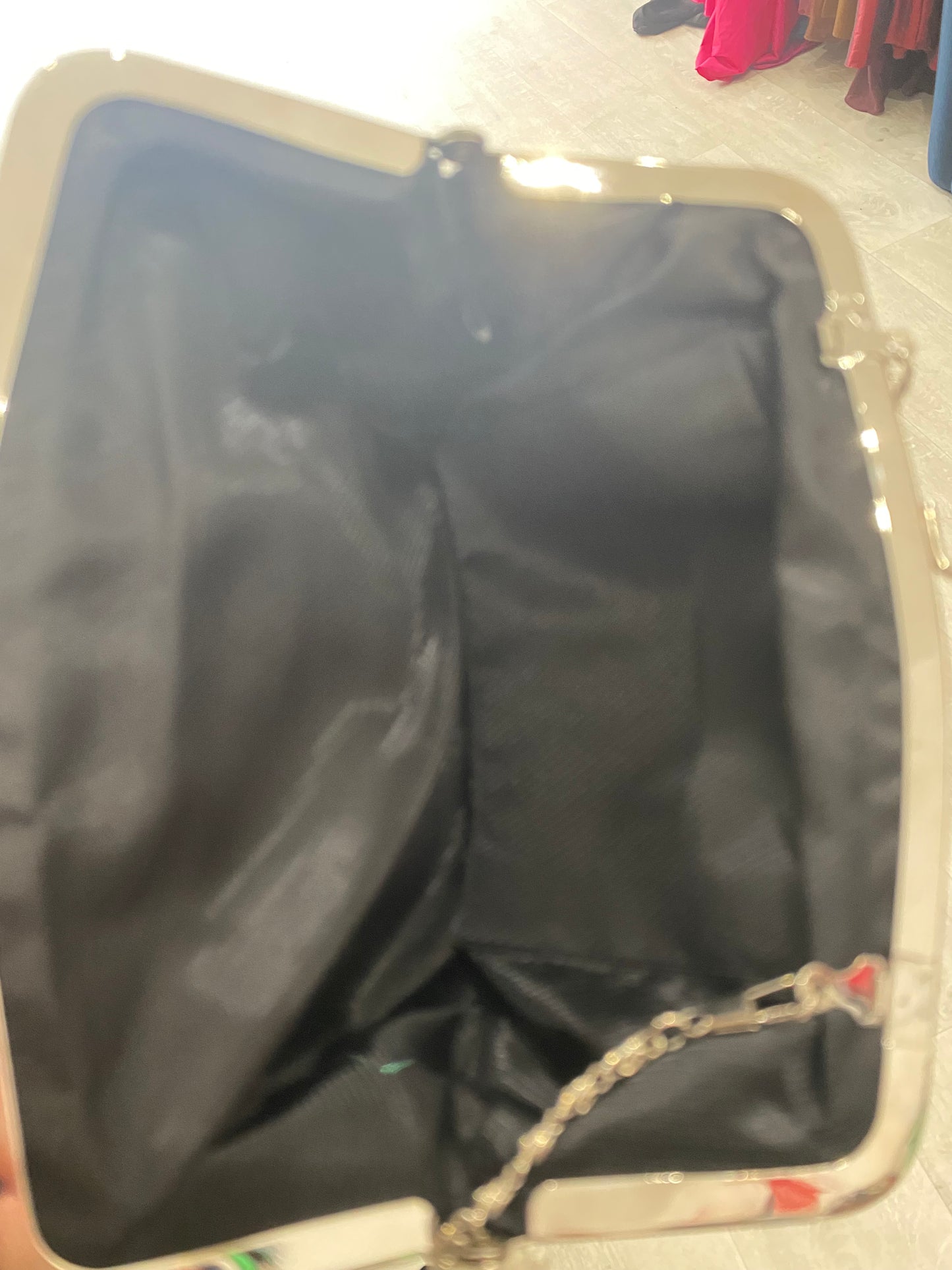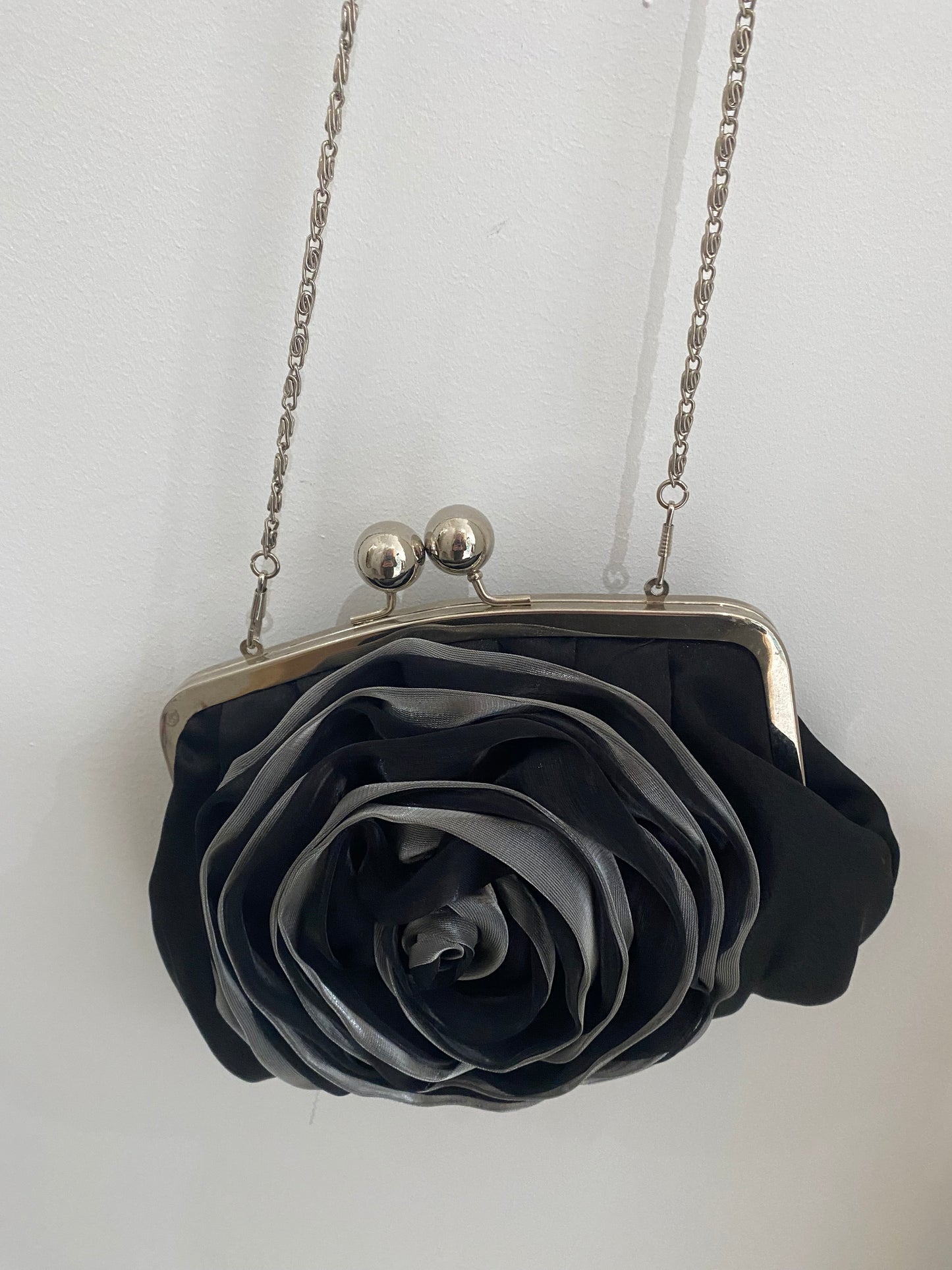 Lovely handbag, has a gorgeous rose flower on the front and a chain strap.
