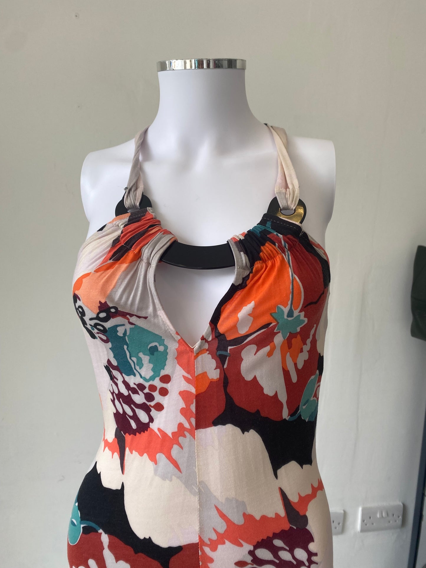 Beautiful print, gorgeous dress with a lovely neck detail.