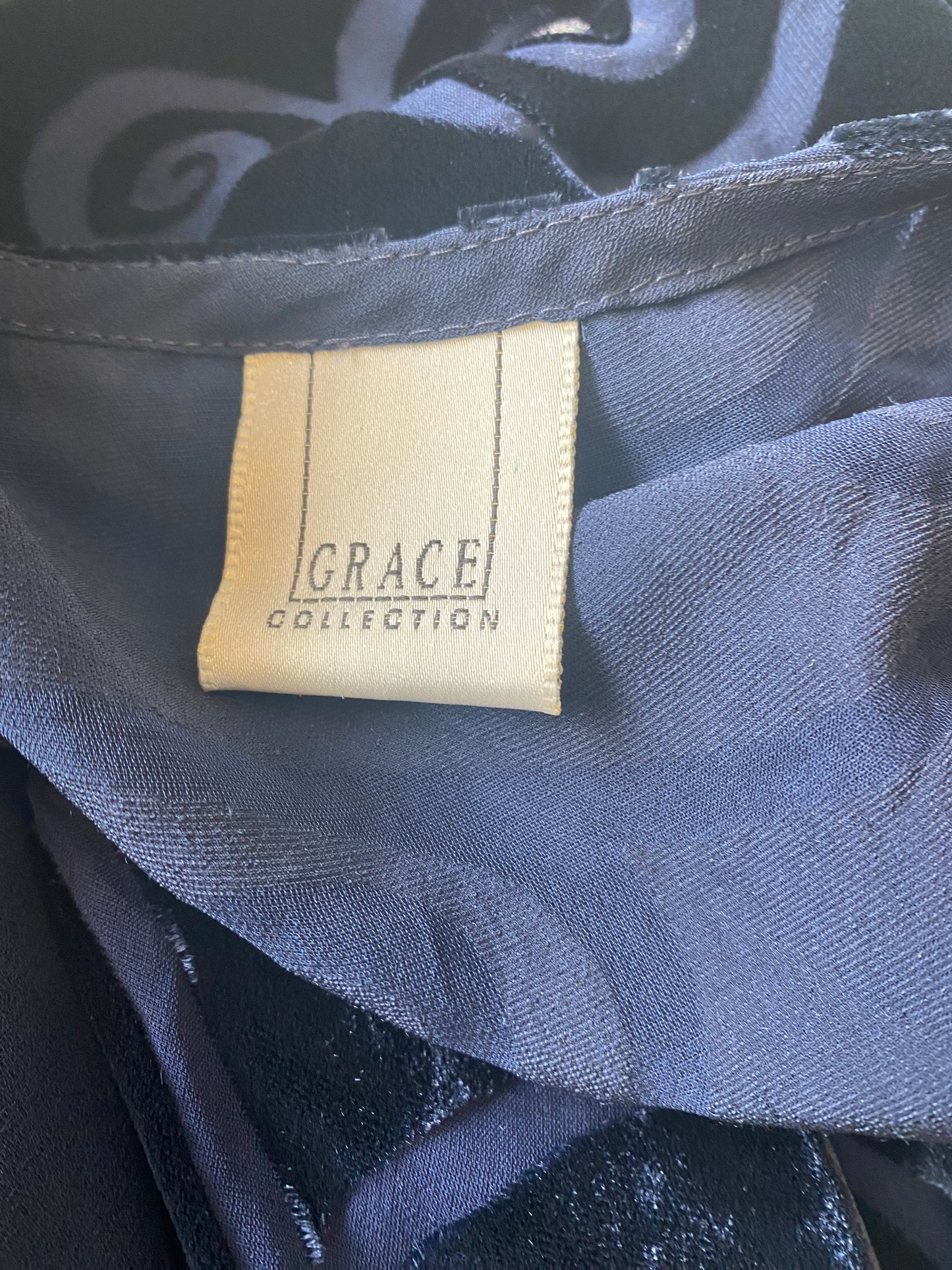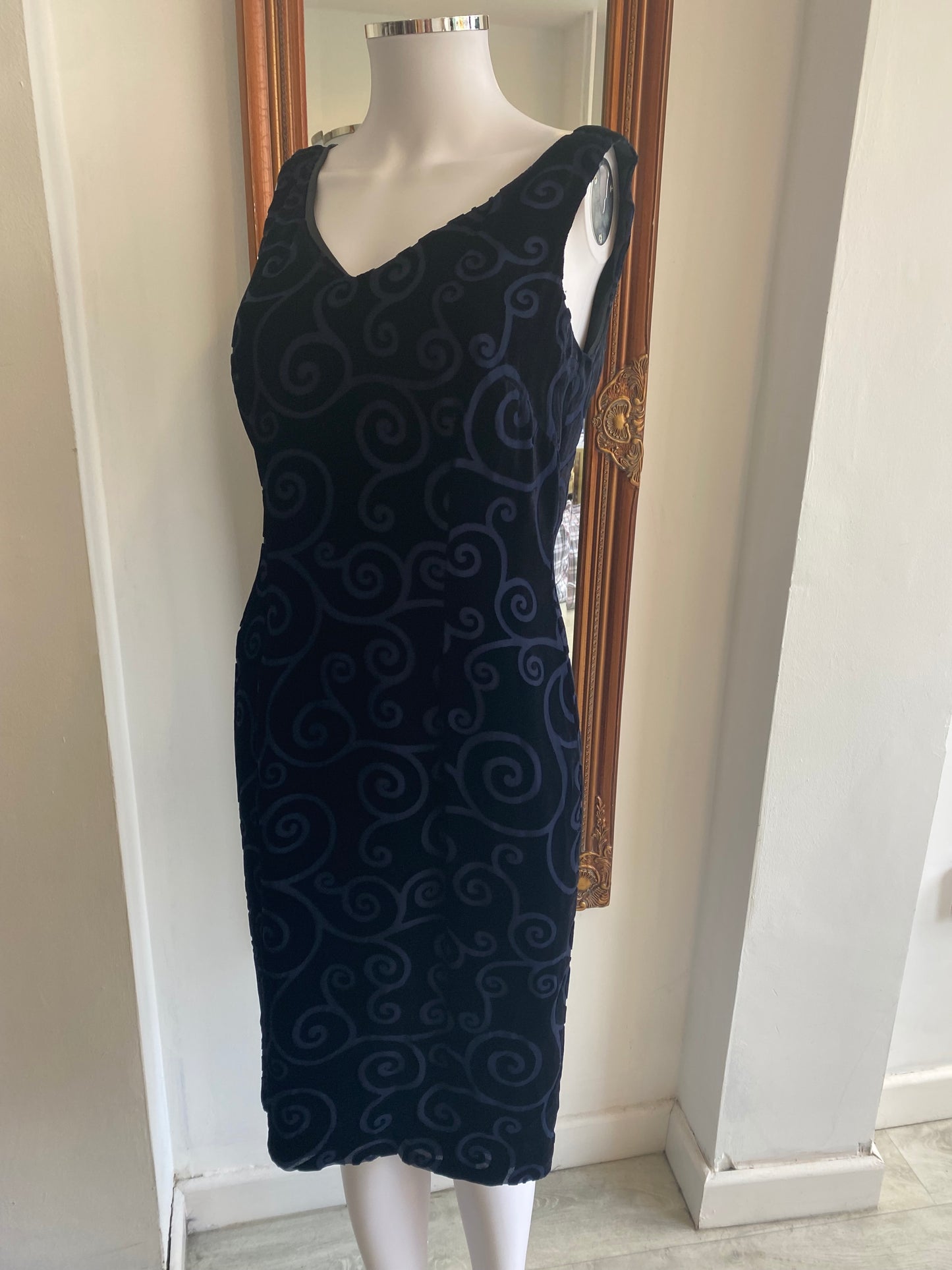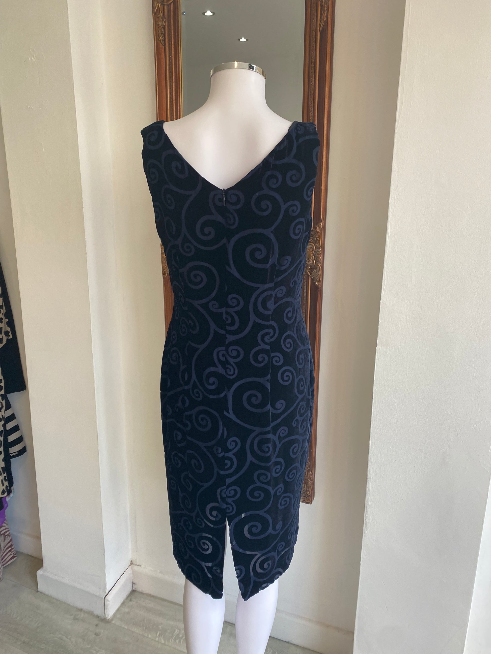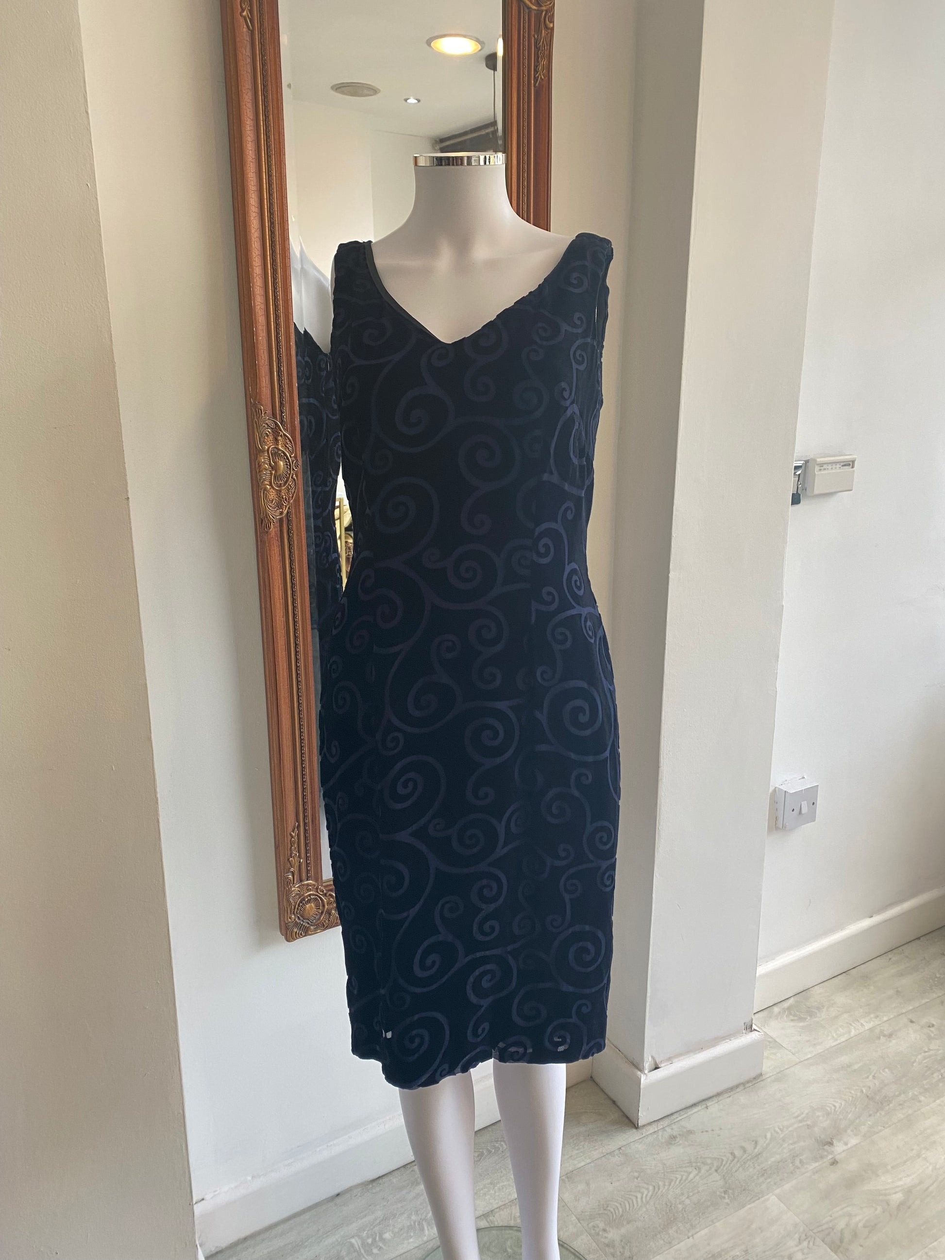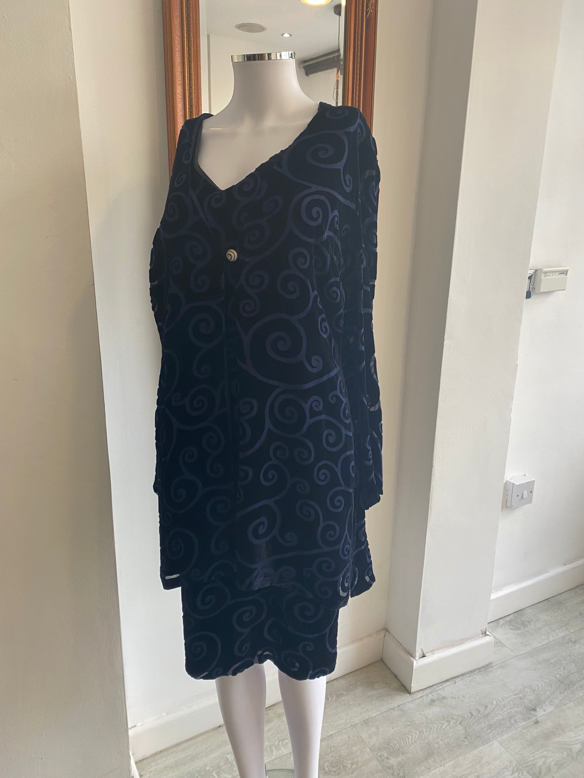 Grace Collection Dark Blue Velvet Swirl Design Dress and Jacket Set Size 10