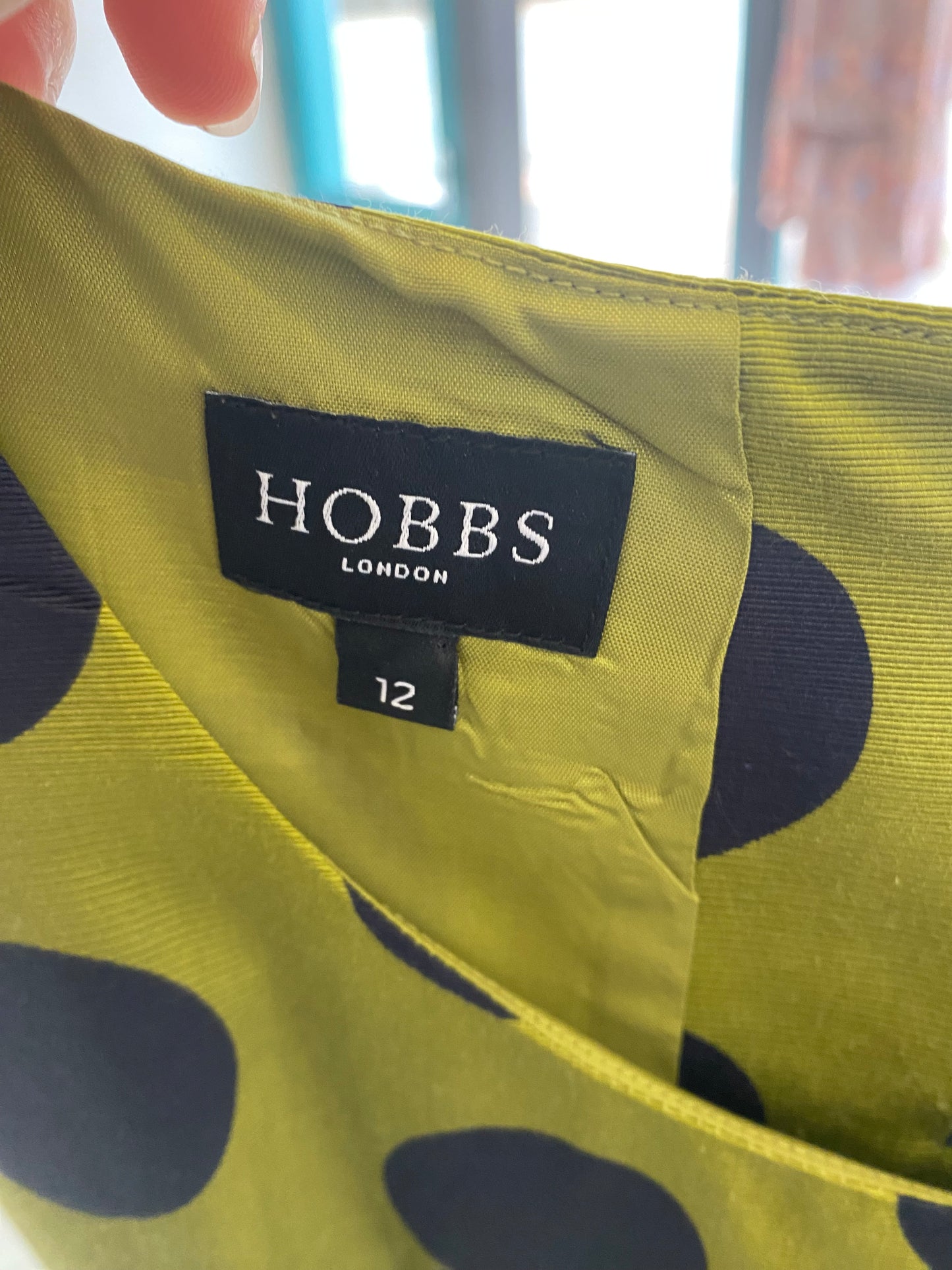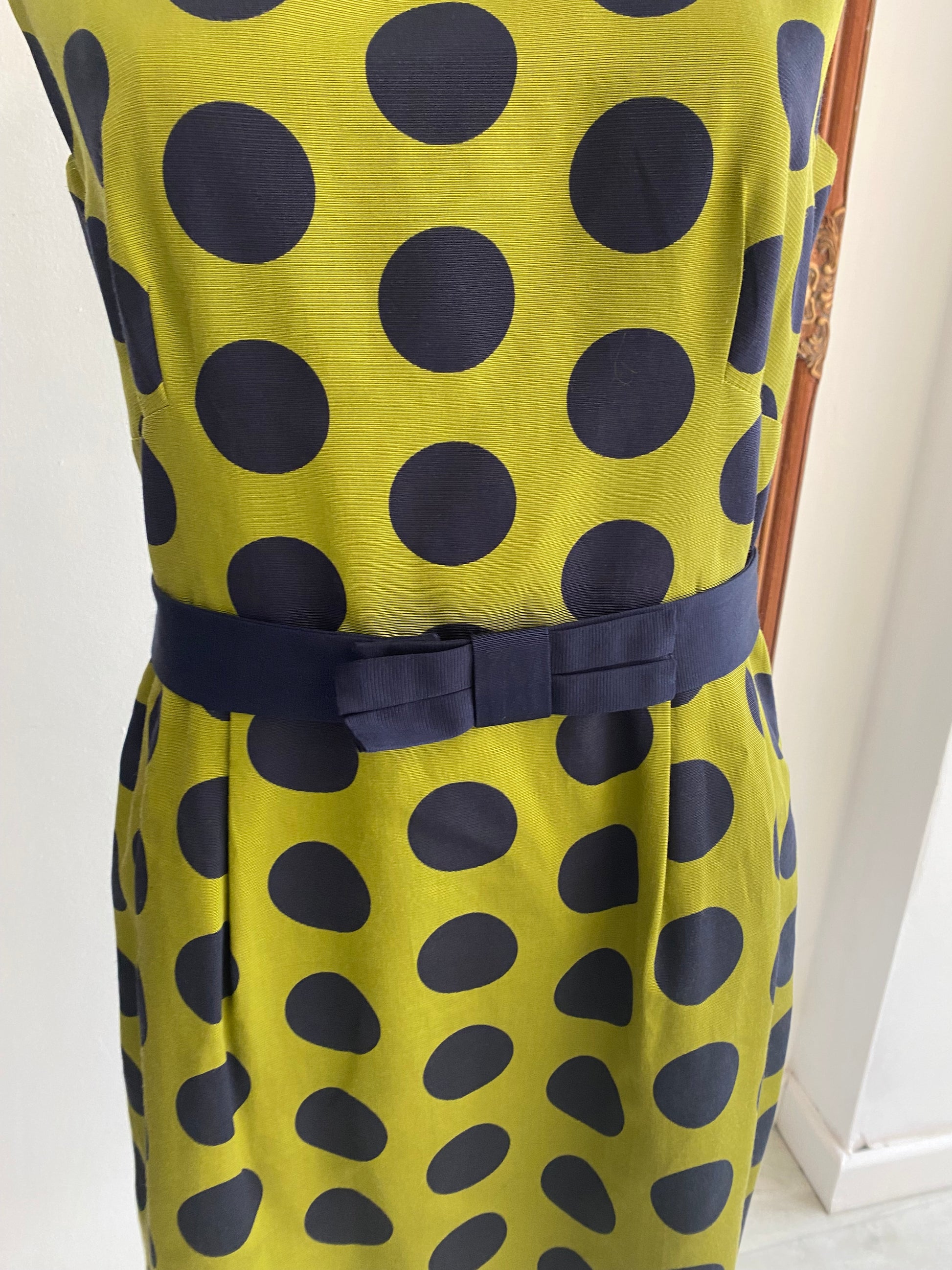 Hobbs Green Dress with Navy Polka Dots and Bow Belt Size 12