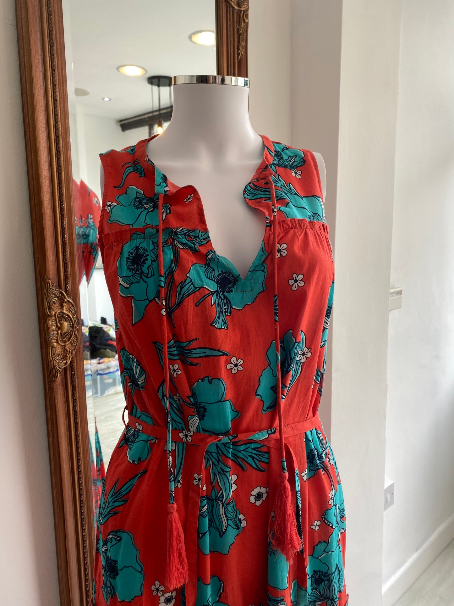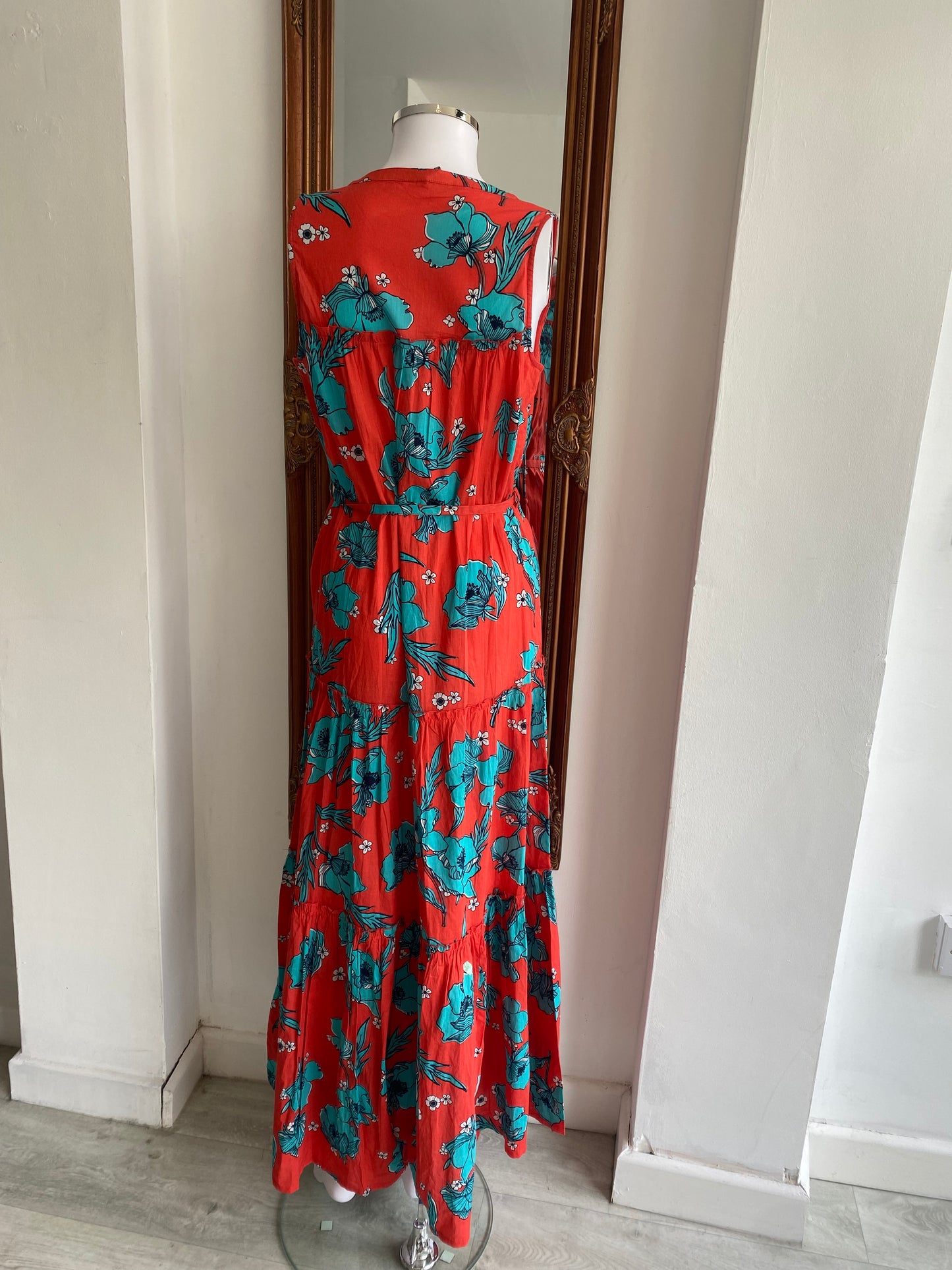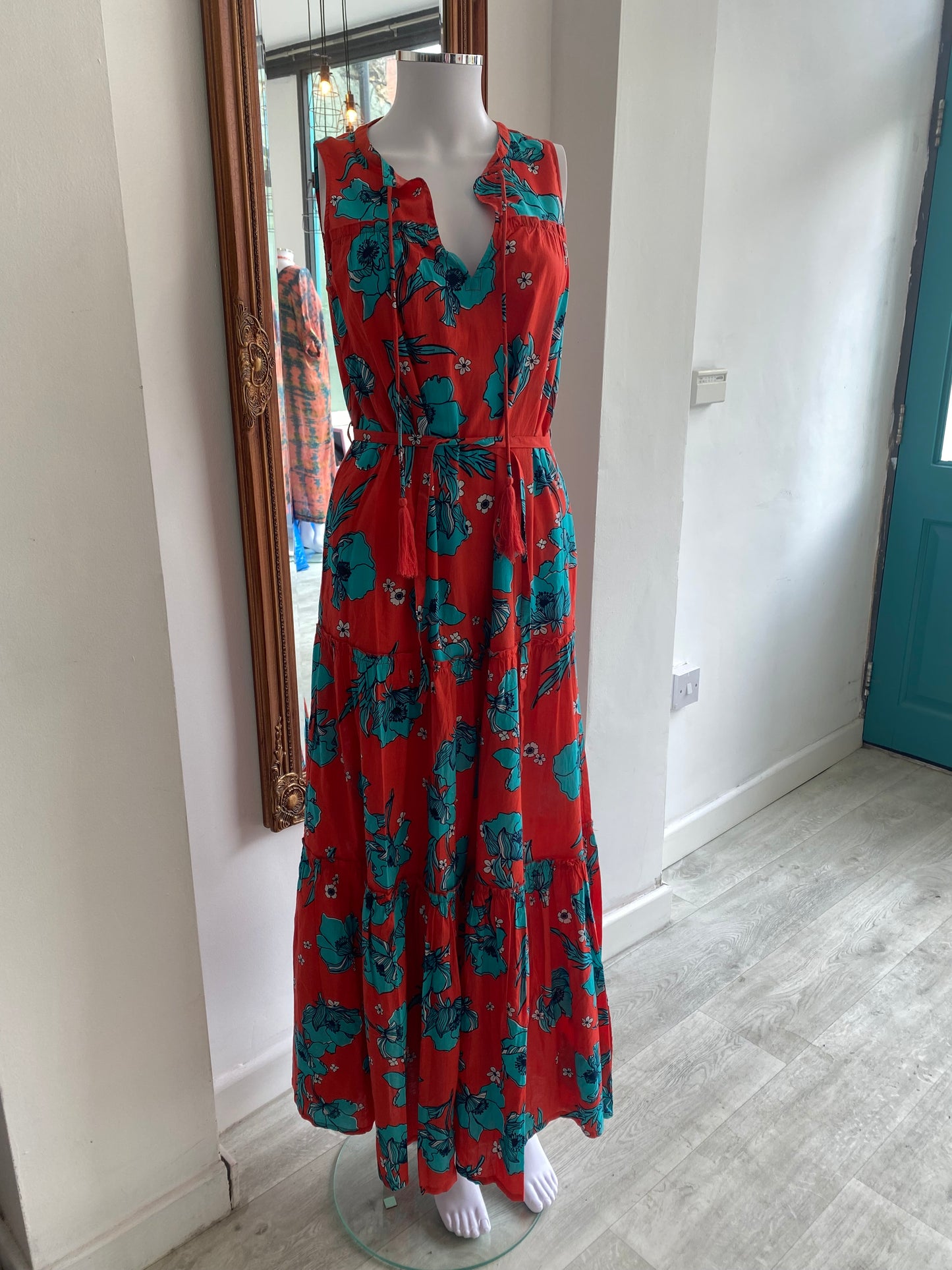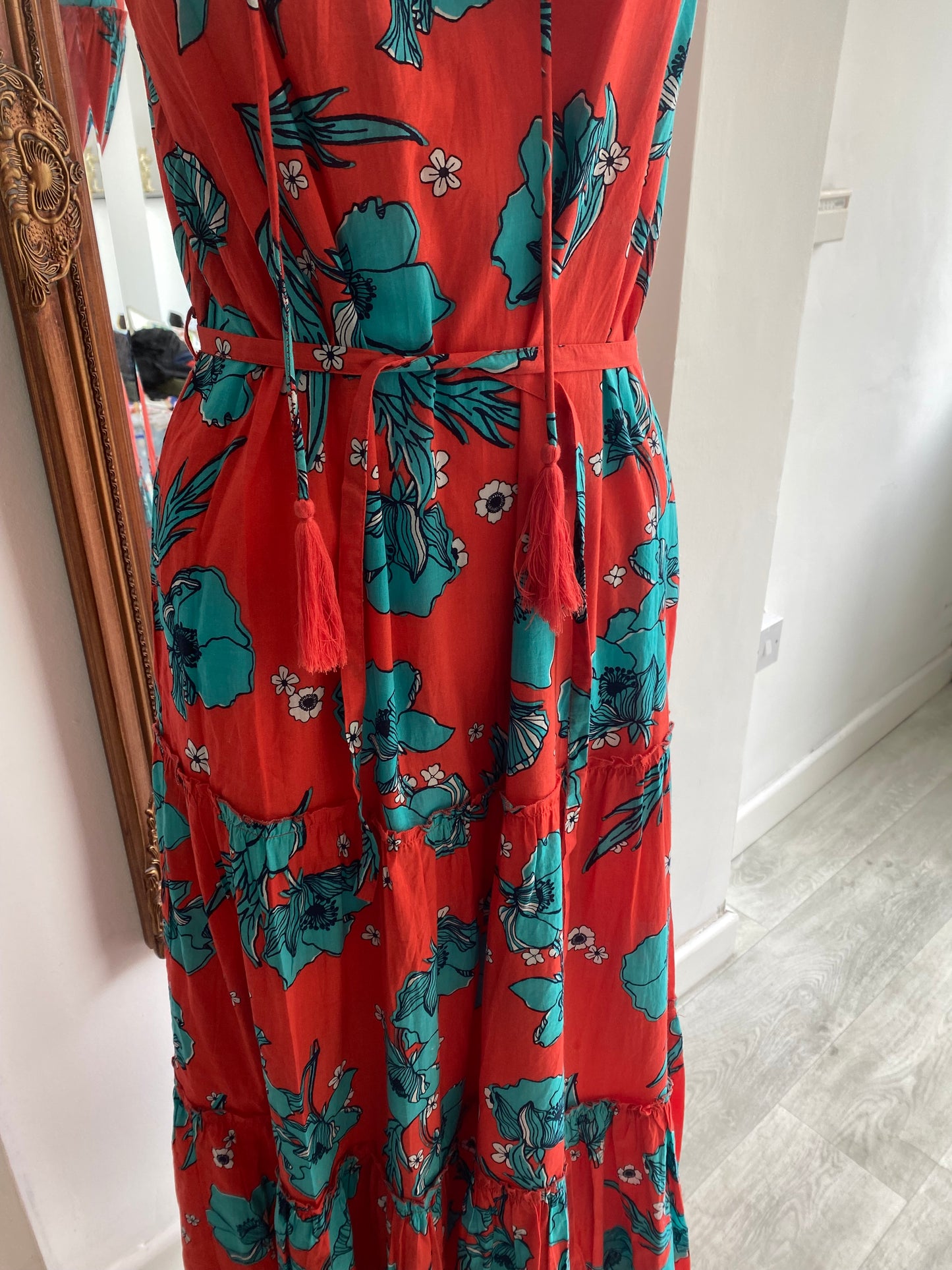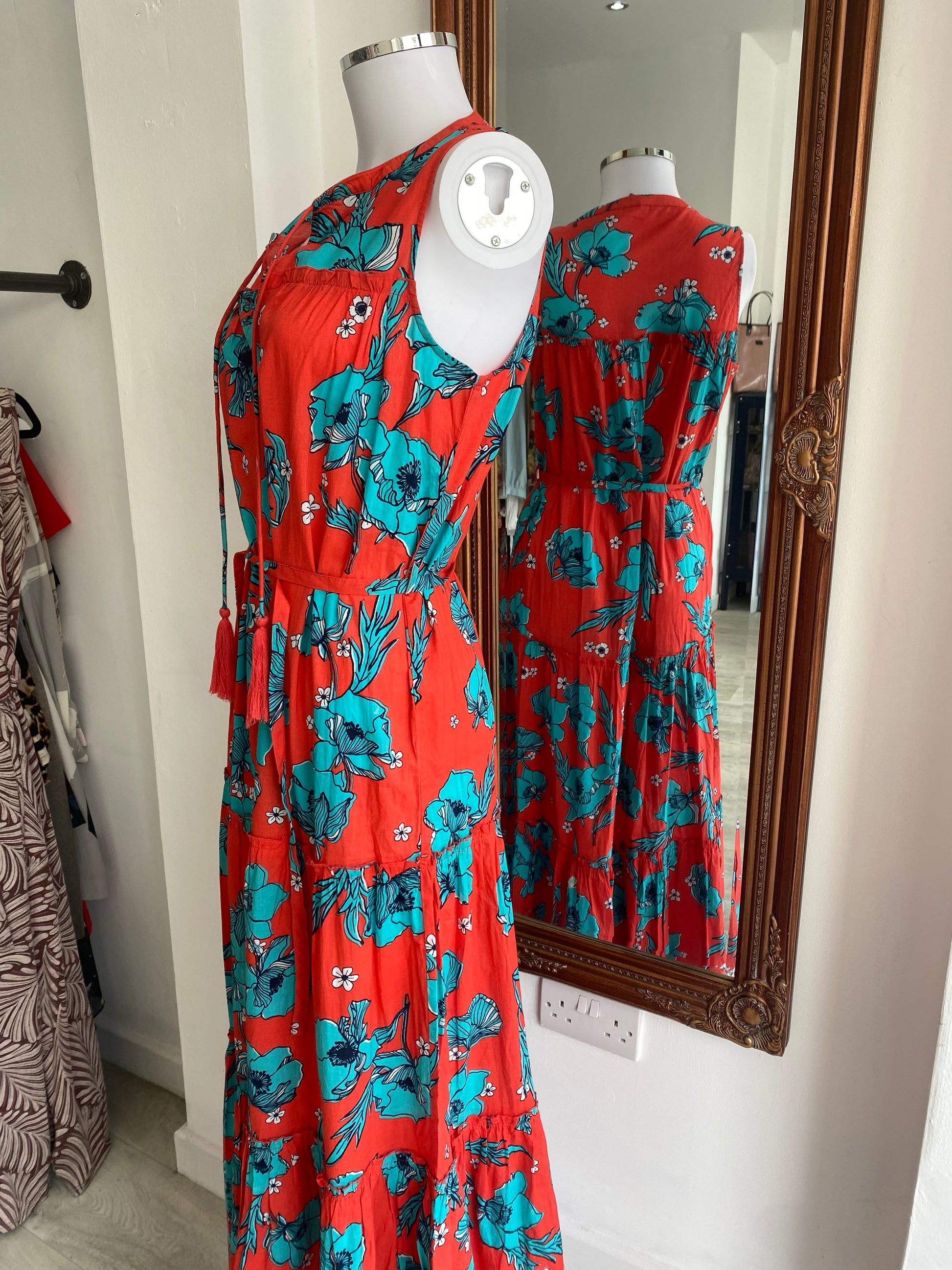 Hush Red Maxi Dress with Turquoise Flowers Size 6-8